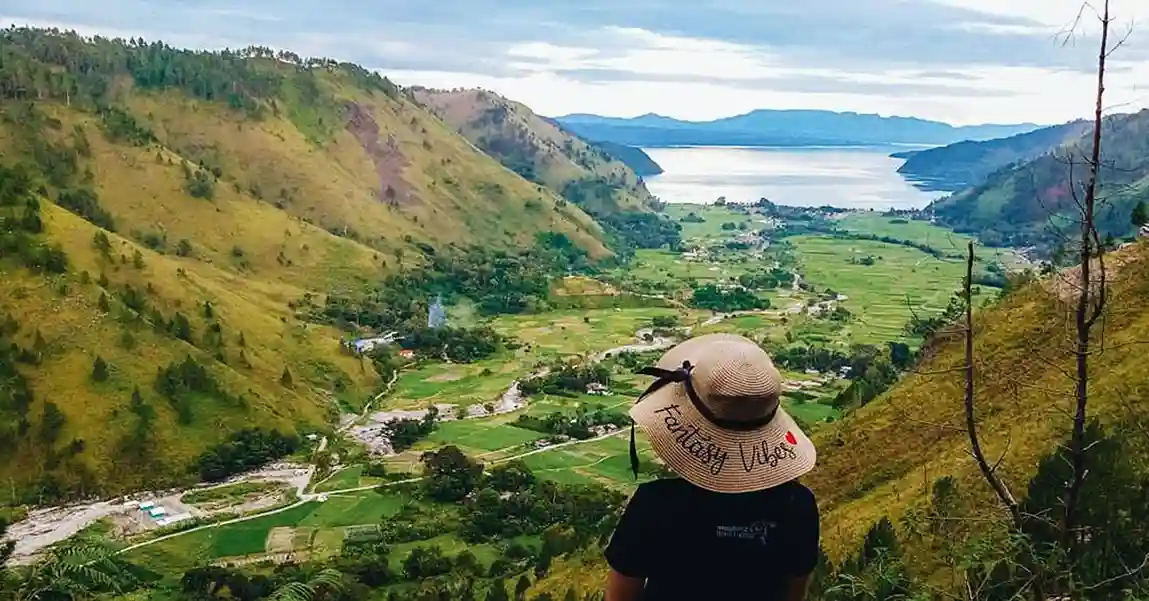 “Melihat Danau Toba dari ketinggian, saya merasa seperti berada di negeri dongeng dengan bentangan air biru yang tenang dikelilingi pegunungan hijau.”